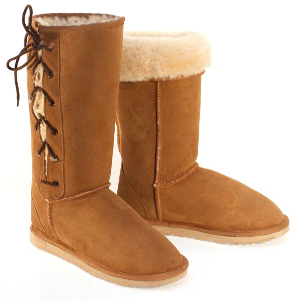 Deluxe Classic Tall Lace Up Ugg Boots - Chestnut