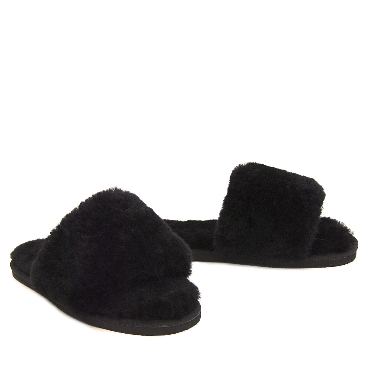 Fluff Sheepskin Slippers - Black