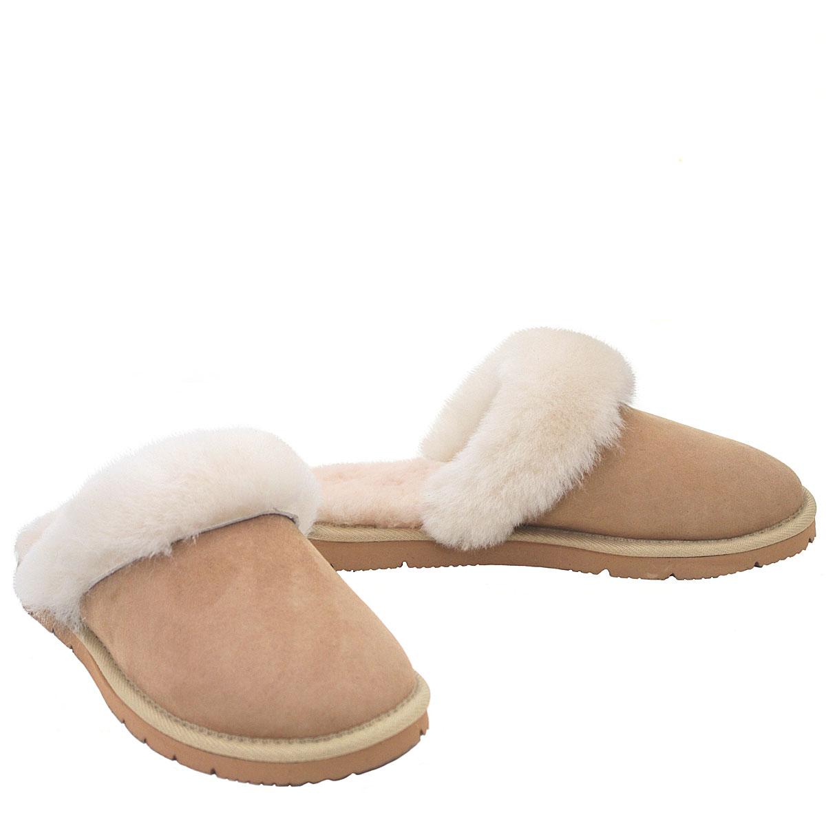 Pamper yourself with pretty comfort! Step into Ladies Sand Sheepskin Scuffs, lovingly crafted from soft Australian Merino wool. Add a touch of feminine charm to your relaxation routine - order now and surround your feet with rosy, plush luxury!
