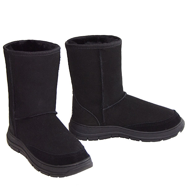 Experience the legendary comfort of premium Australian sheepskin that keeps your feet warm and dry on any adventure. The durable double-faced sheepskin upper ensures long-lasting performance, while the supportive heel counter and protective toe cap provide extra comfort and protection. The sleek black design transitions seamlessly from trail to town, making them a must-have for outdoor enthusiasts.