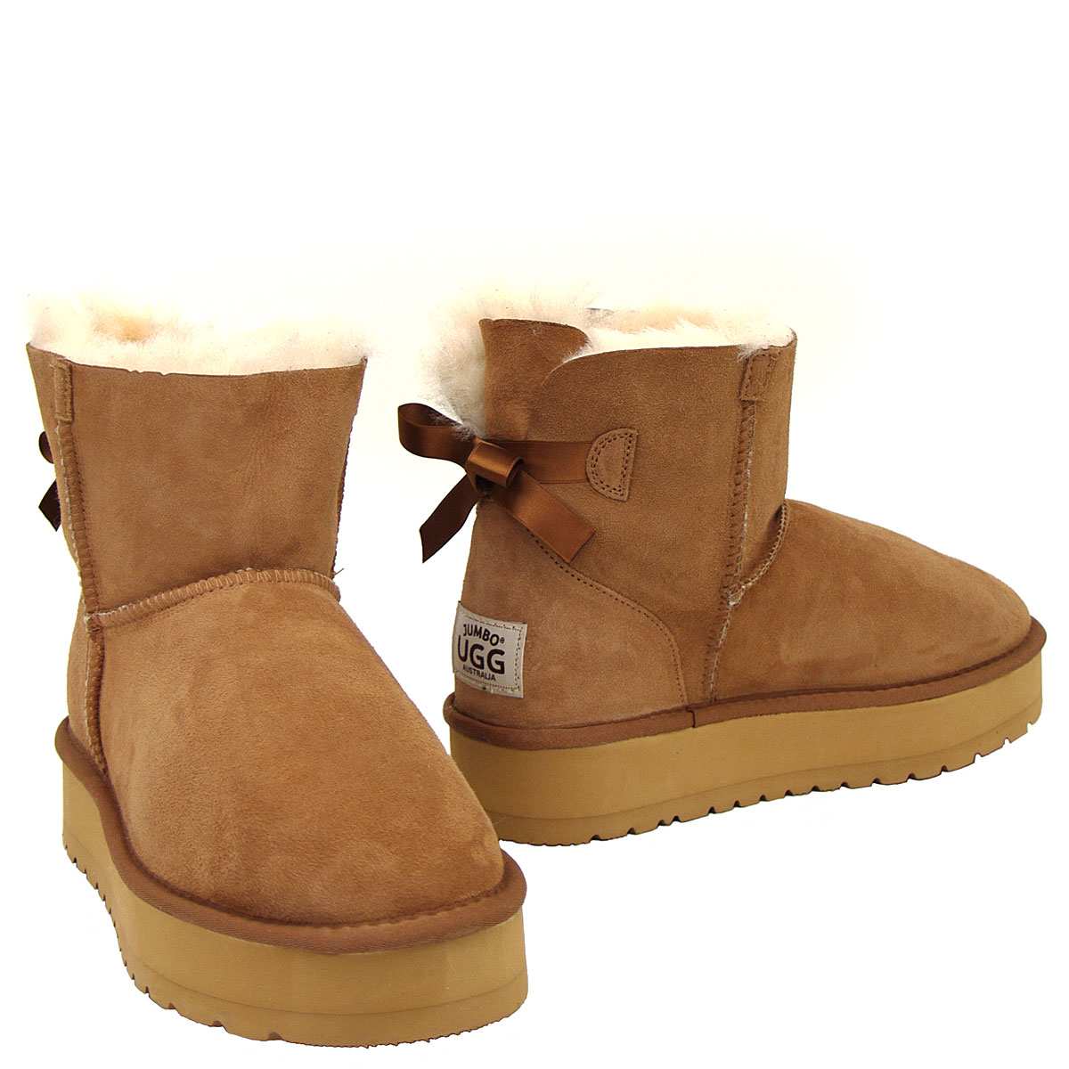 Experience the perfect blend of height-boosting style and legendary Ugg comfort with our Chestnut Platform Mini Bow Ugg Boots – your new go-to footwear for effortless chic