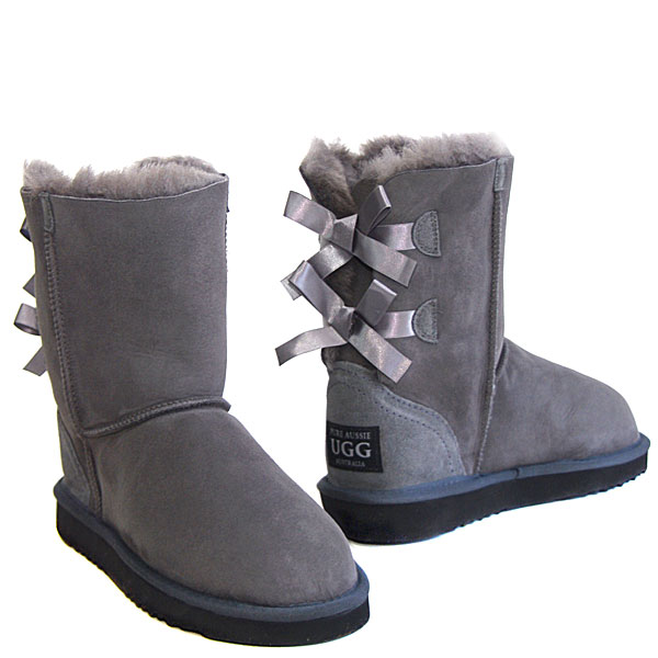 Short Metro Bow Ugg Boots - Grey