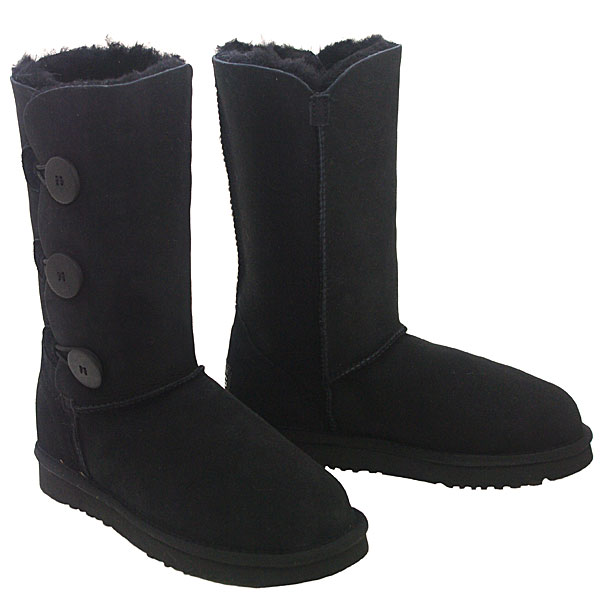 Tall Three Button Wraps Ugg Boots Black